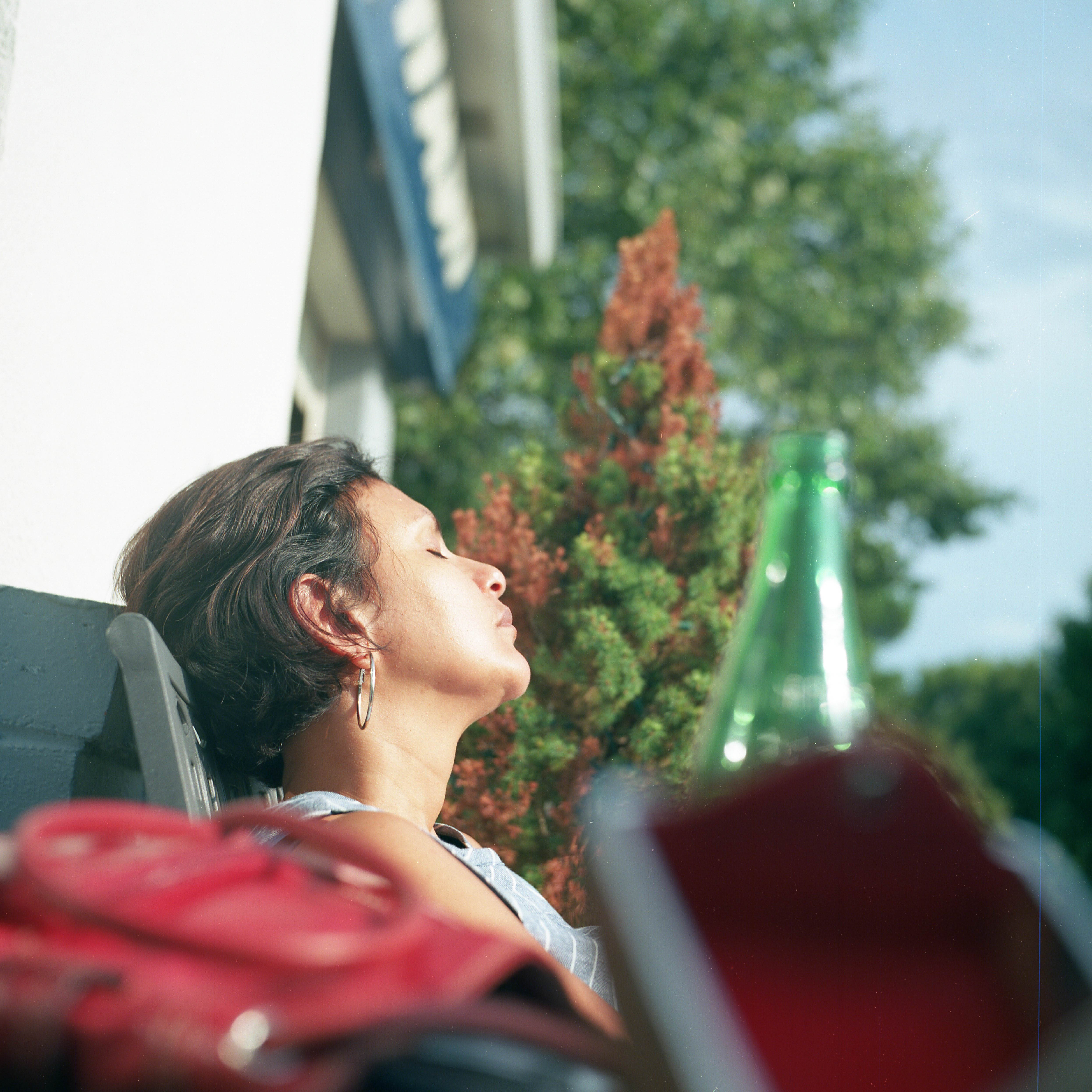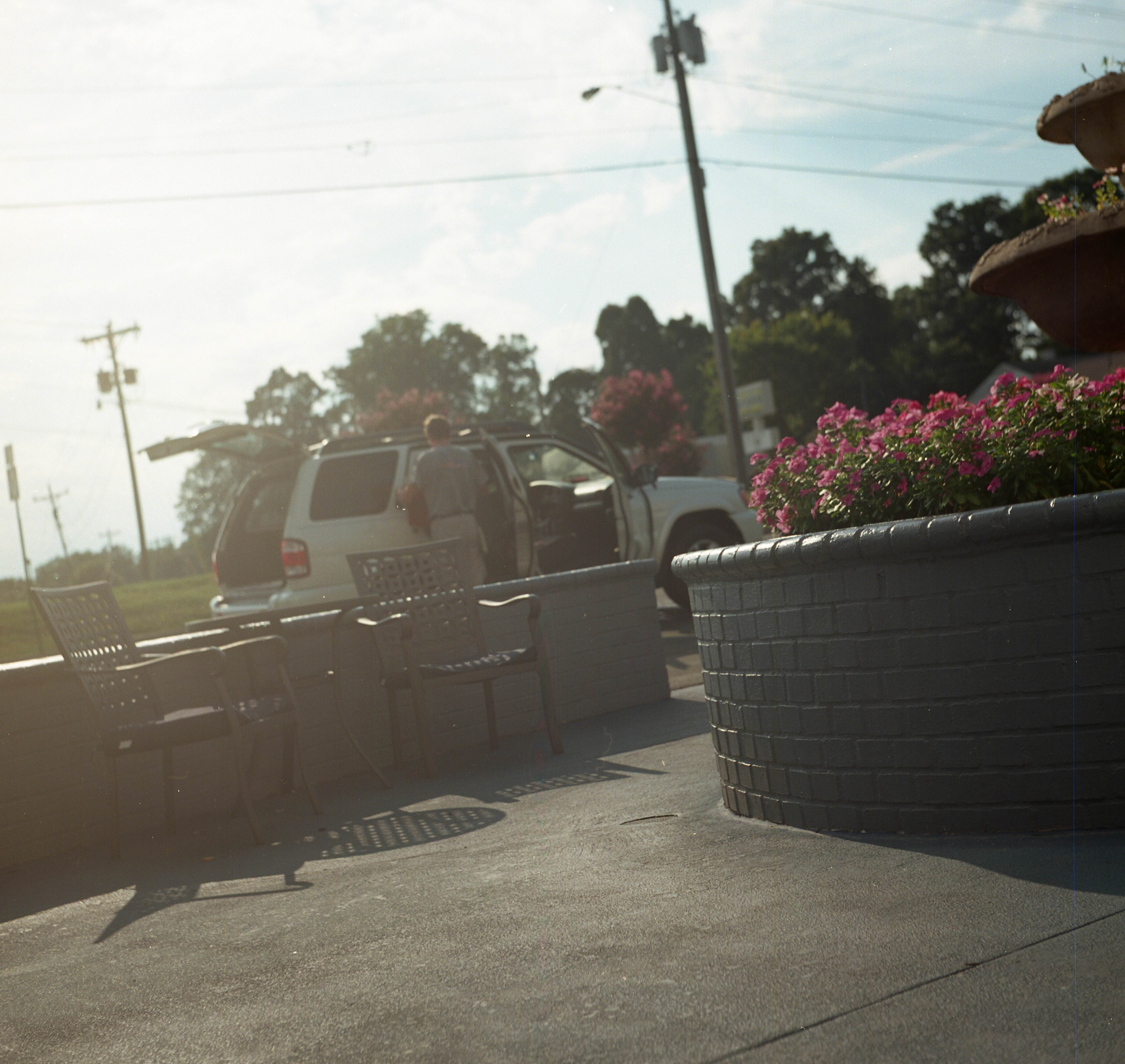 Medium format cameras are fantastic for landscape and isolated portrait and environmental locations but, since my life does not allow much time for such, one of my favorite things to do is to use medium format cameras in everyday situations. Snapshot overkill. This is a very portable camera that is easy to have on you. As an example one day at the carwash I noticed my better half taking in some sun while we waited on the car (in gallery below).