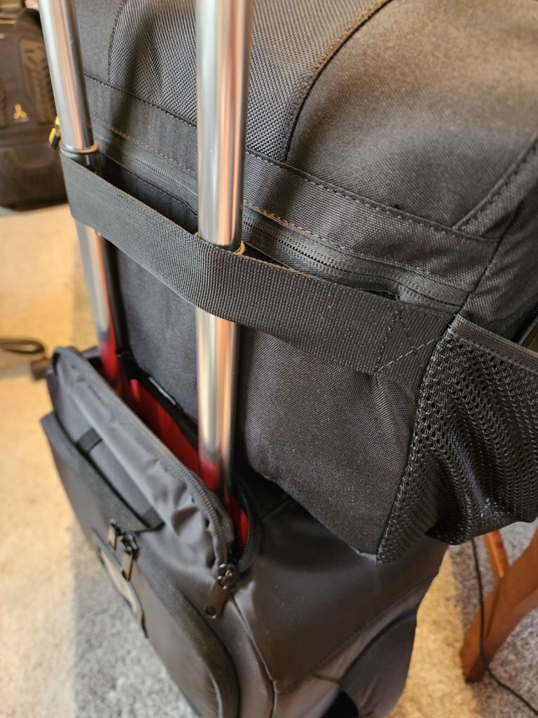 And, as an added bonus the trolley configuration allowed me to secure a lighting bag with a trolley sleeve to sit on top. So now I can carry nearly all of my gear, save lighting modifiers and stands, on one trolley.