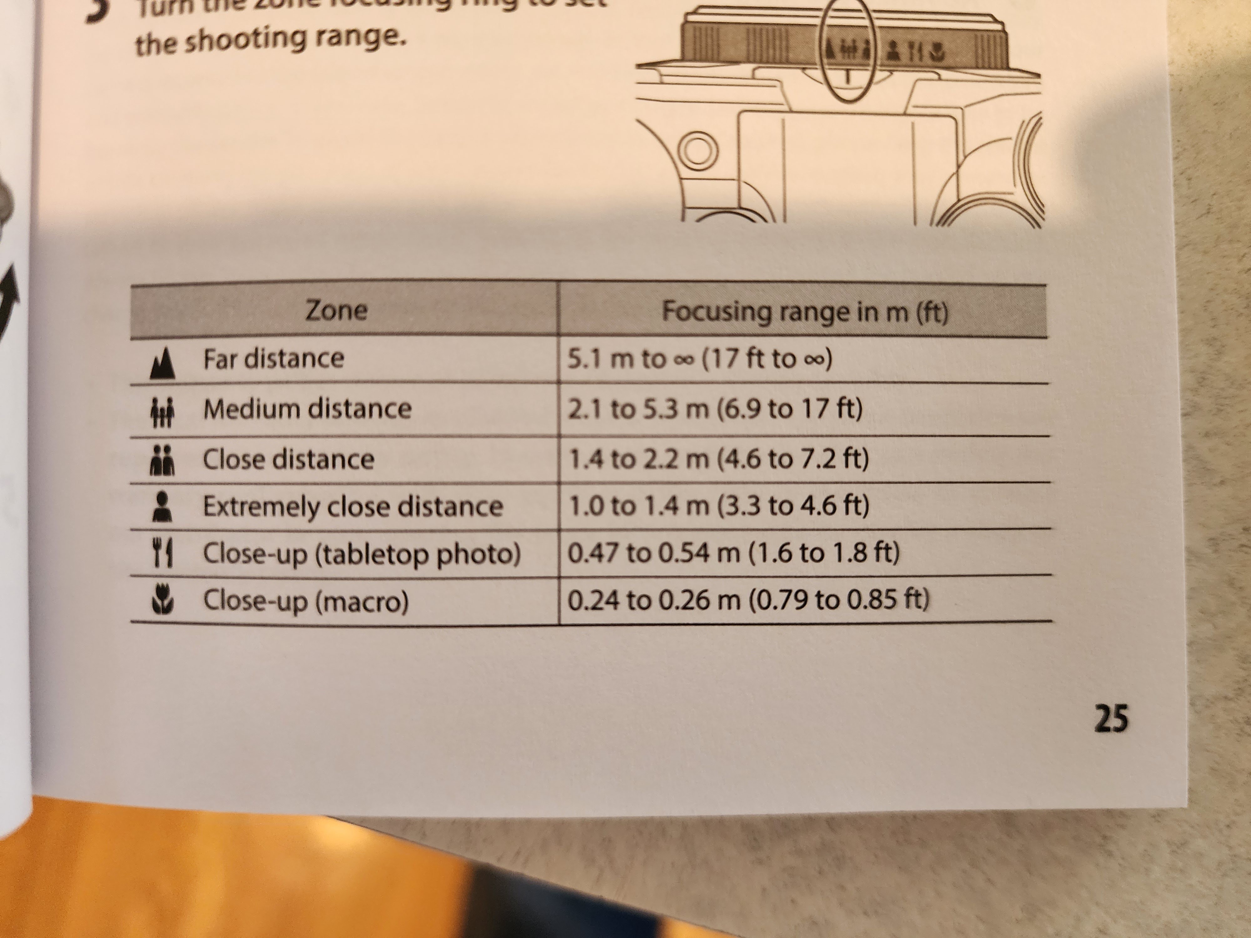 …but that is not really necessary since the same information is printed right on the camera body with a pointer to the distance that is currently selected.