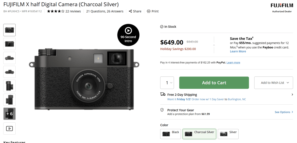 The x Half. A fun little 1″ sensor having stills point and shoot camera.