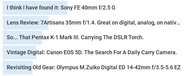 January 3, 2025January 3, 2025Lens Follow Up: 7Artisans Photoelectric 50mm f/1.8 AF; Again… Far Better Than It Has Any Business Being. Continue reading "Lens Follow Up: 7Artisans Photoelectric 50mm f/1.8 AF; Again… Far Better Than It Has Any Business Being."